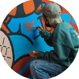 フリースタイルを重視したライブペインティングやミューラルを得意とし、自然と都会的なイメージを融合したアブストラクトなスタイルで描く。