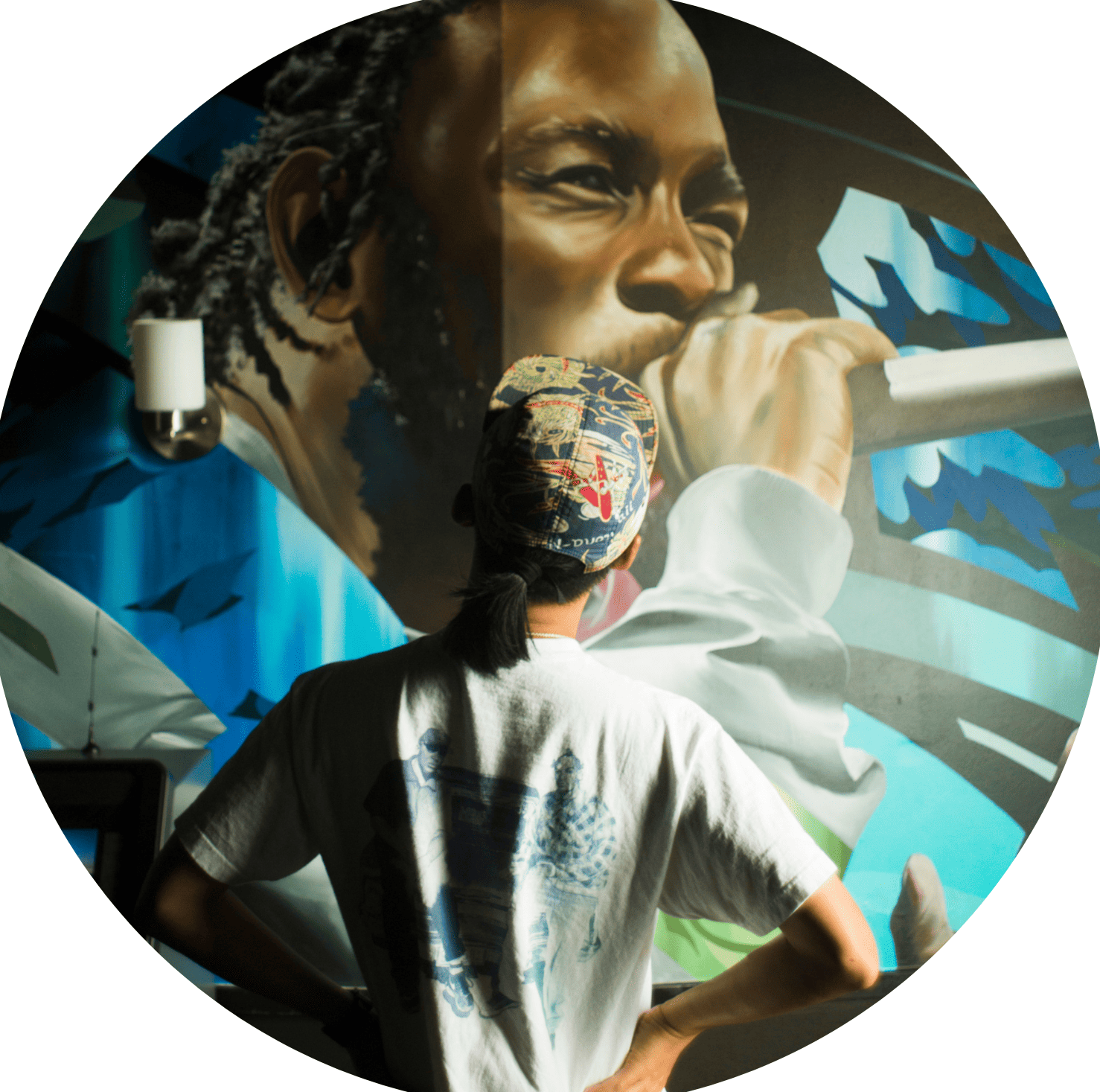幼少期に触れたストリートアートを原体験に、2007年より壁画とタブローの制作を開始。個人や主宰するWHOLE9として、多様な企業(Adidas, Amazon, Googleなど)へ壁画やグラフィック提供を行い、国内外(Taiwan, Australia, USA)で制作を続ける。
